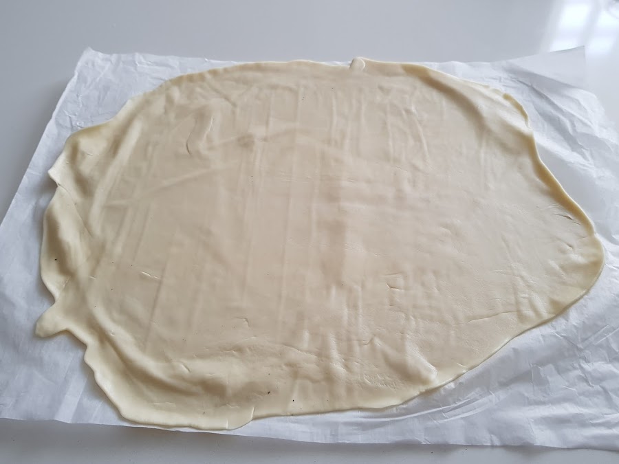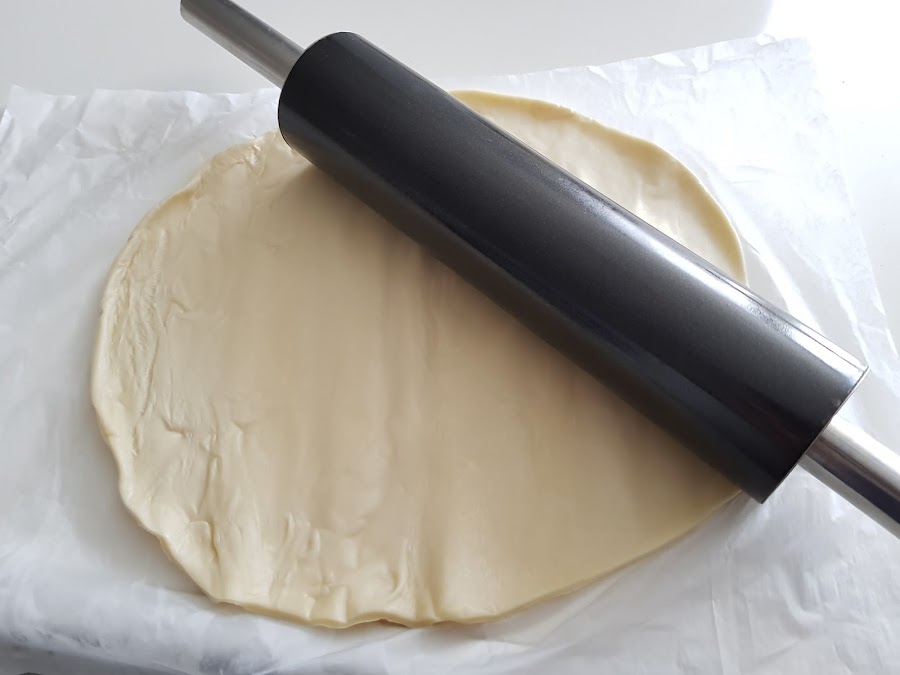 Pero os aseguro que el resultado es estupendo, porque no la utilizo tal cual, sino que paso el rodillo por la masa hasta dejarla casi transparente, con lo que nos queda una masa super fina, crujiente y nada pesada.