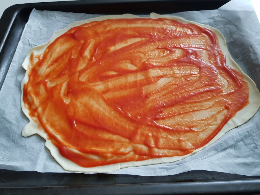 Lleva poco tiempo el prepararla porque los ingredientes que lleva no hay que trocear, ni preparar nada, sólo untar y espolvorear, y al horno unos 8 minutos.
