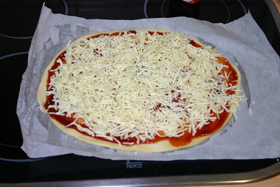 Ingredientes:Masa de pizza ya hecha, una base