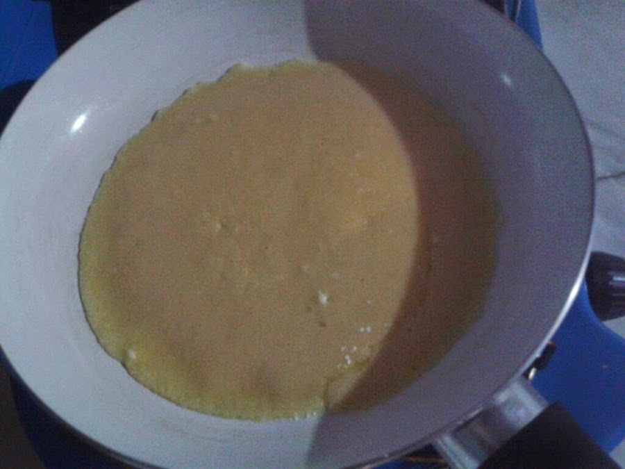 En un cuenco ponemos maicena, harina, sal y huevo.... En una sartén se echa un poquito de aceite (como para hacer una tortilla) y se echa la mezcla del cuenco.