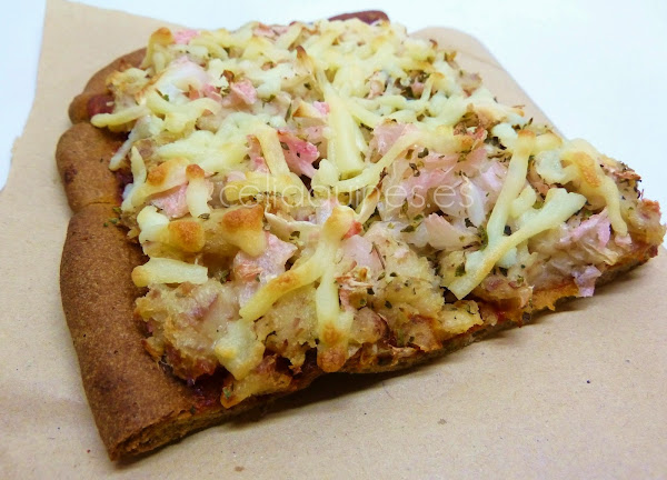 7) Una vez prehorneada la base de nuestra pizza ya podemos rellenarla de lo que queramos y volver a hornear hasta que los ingredientes que le pongamos estén cocinados.