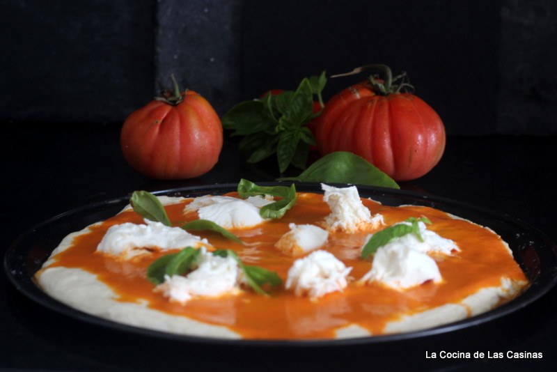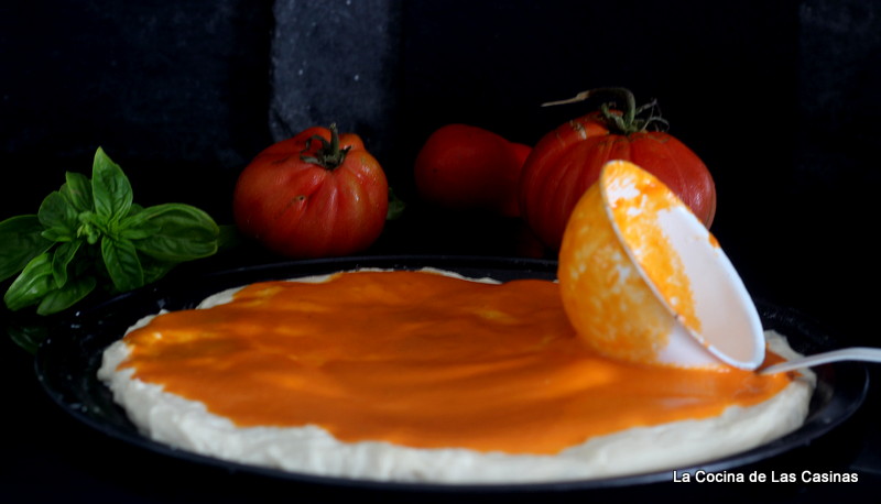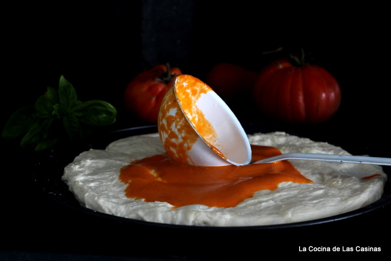 He aprovechado que Javier y Luis me han regalado unos exquisitos tomates de su huerta y me he preparado una salsa de tomate de escándalo. ¿Qué mejor que utilizarla para una buenísima pizza?