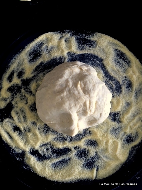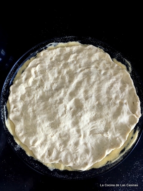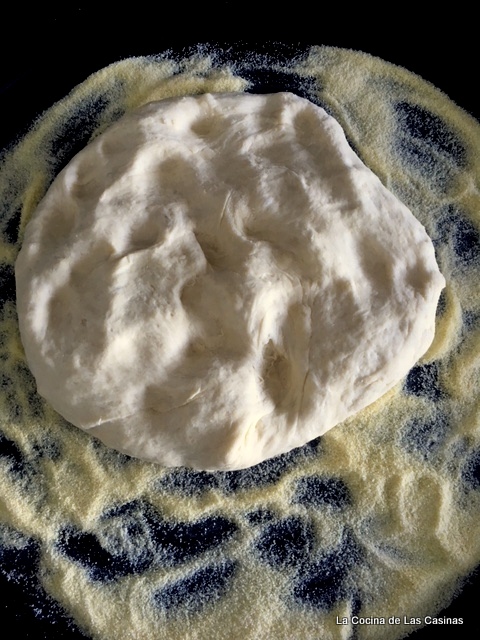 Cubre con un paño de cocina y reserva durante una hora, al final de la cual extiendes, con las manos, sobre tu bandeja apta para el horno que has espolvoreado con la sémola. Deja levar una hora más.
