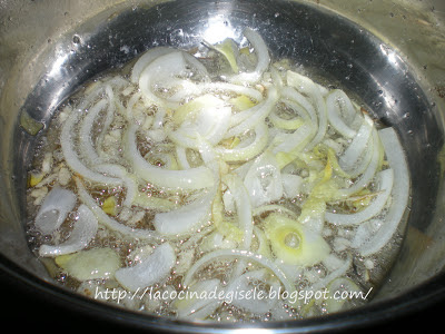 Primero sofreimos la cebolla y el ajo a fuego medio