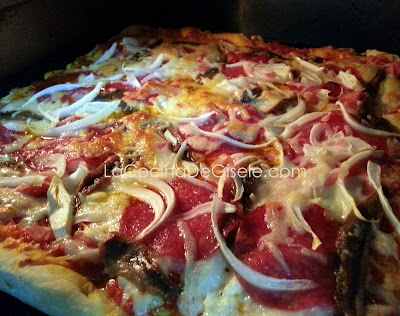 1 cucharadita de azucar, 1 cucharadita de sal, Anchoas, Jamón, Queso Mozzarella, Cebolla picada, Salami o salchichón