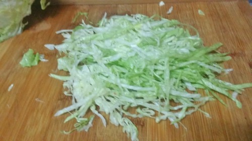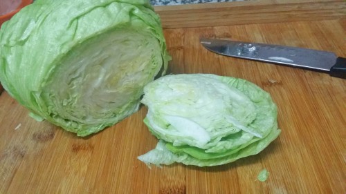 - Cortamos la lechuga iceberg de manera muy fina