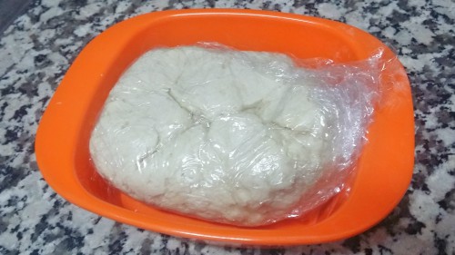 Haremos las bolas y colocamos en un táper alto, untado con aceite para que no se pegue la masa y tapando con papel film. Colocaremos esta táper en la parte más fría de la nevera durante 24h.