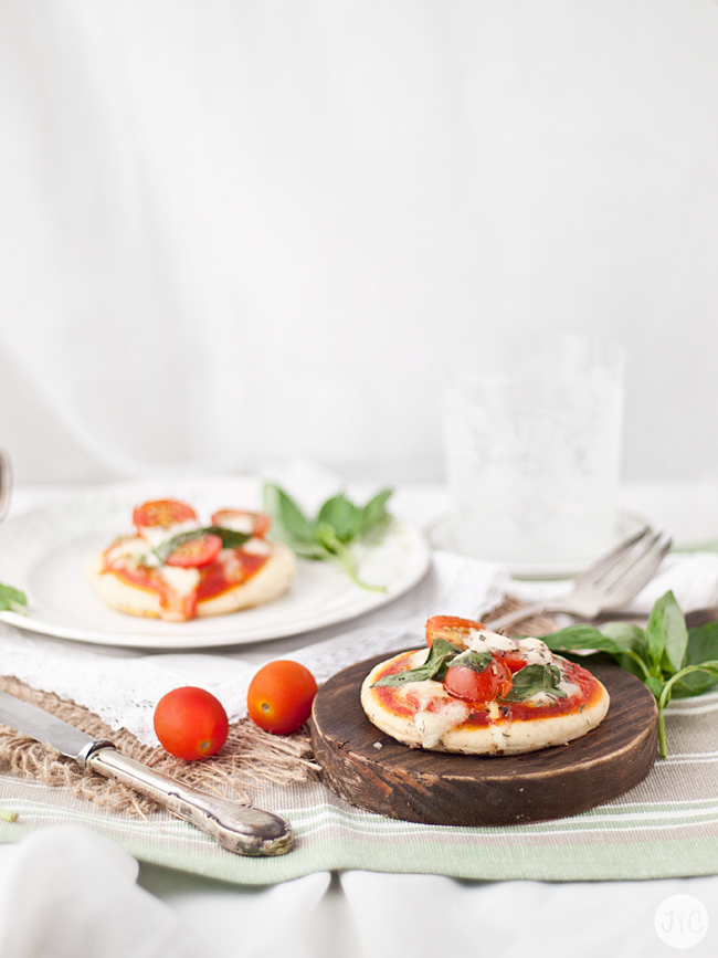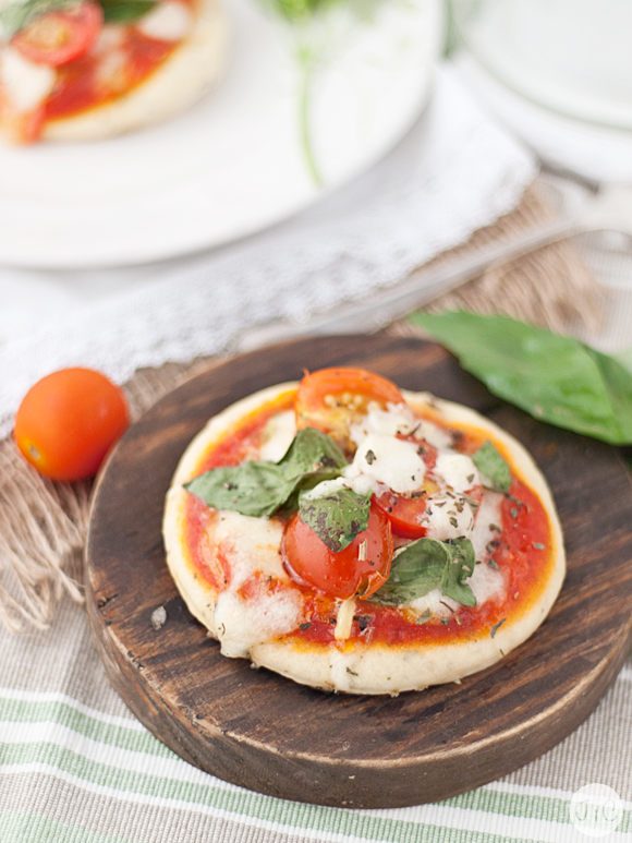 La pizza, como casi toda la pasta, es uno de los alimentos más versátiles que conozco y se acomoda a la perfección a cualquier combinación que le pongas por delante. Yo ya he hecho alguna otra receta de pizza y la verdad es que no sé con cuál quedarme... Tal vez con estas: por el tamaño y porque me encanta la mezcla de tomate y albahaca