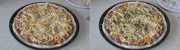 Cubrimos con más mozzarella y la espolvoreamos con el parmesano en polvo y el orégano seco molido.