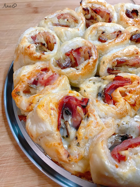 Os voy a enseñar a preparar unas fáciles y ricas Pizza Rolls.. Y diréis, esto que es? Pues unas simples pizzas con masa de hojaldre (por ser cuadraras, simplemente) con los ingredientes que tenemos por el frigorífico, enrollas, cortadas en trocitos, puestas en un molde y horneadas.