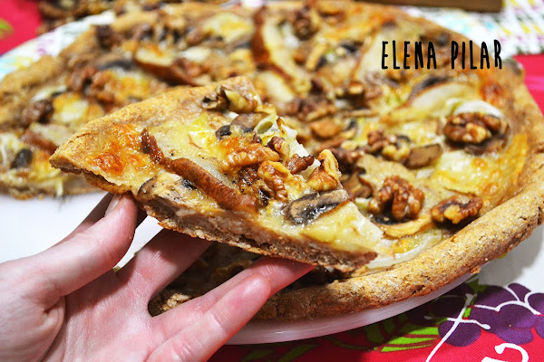 Una masa elaborada a base de yogur y harina integral, sin amasado ni reposos. Y con unos toppings que la hacen aún más irresistible, en los que se unen la jugosidad y punto picante de la cebolleta, la cremosidad del queso, el dulzor de la pera y el toque crujiente y tostado de las nueces.