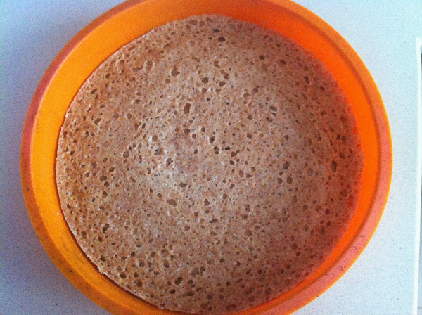 Lo primero es empezar con la masa. La elaboración es muy sencilla, se mezclan todos los ingredientes secos (menos el gasificante). Se le añaden las claras de huevo y cuando está todo bien integrado se incorpora el queso batido. Una vez que la mezcla es homogénea se añade uno de los sobres del gasificante, se vuelve a mezclar bien, y luego se incorpora el otro sobre haciendo lo propio. Nada más añadir el segundo sobre de gasificante la masa comenzará a hacer burbujas y tomará una consistencia de mousse, sin perder mucho tiempo se vierte en un molde apto para microondas (yo uso uno de silicona) y se pone a máxima potencia durante 4min. Después se le da la vuelta a la masa y se vuelve a introducir otro minuto más. Y con ésto, la masa quedará lista.