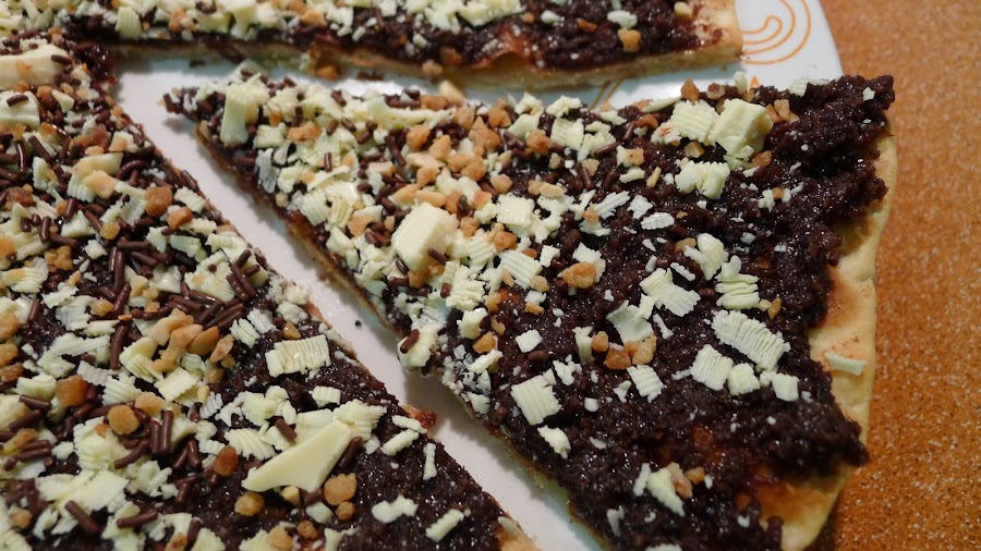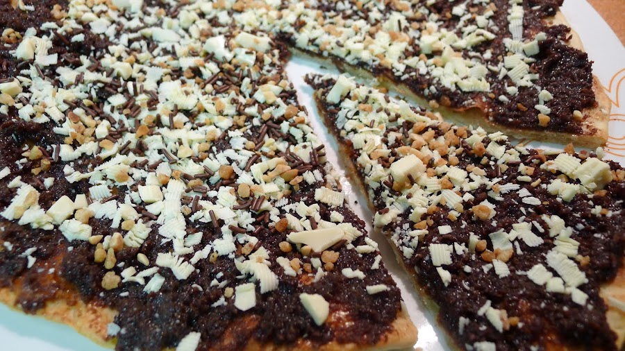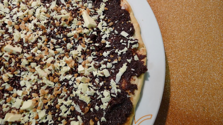 Como creo que ya va tocando algo dulce y ya estamos a las puertas del fin de semana,aqui os traigo esta deliciosa pizza de chocolate! Tenia tantas ganas de preparar una pizza dulce en casa desde que probe unas en un buffet ,que ayer mismo nos dimos el caprichito y lo mejor,lista en unos minutillos!
