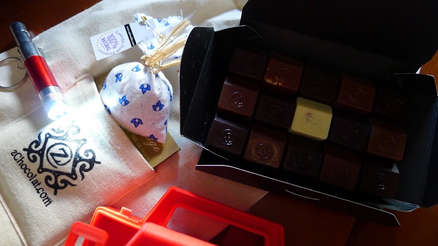 Todo hay que decirlo,al abrirlo,esperaba mi cajita de madera personalizada taaaan bonita que tantas de vosotras teneis,que al ver el kit de supervivencia me decepcione un poquitin,pero bueno,por poco tiempo,cuando probe el primer bombon se me paso el disgusto jeje.La verdad es que esta gracioso,con su linternita y todo verdad?