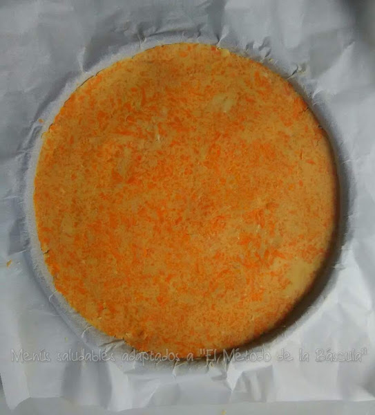 En un molde para pizzas cubrir con papel de horno y darle forma a la base rellenando hasta que quede compacta.