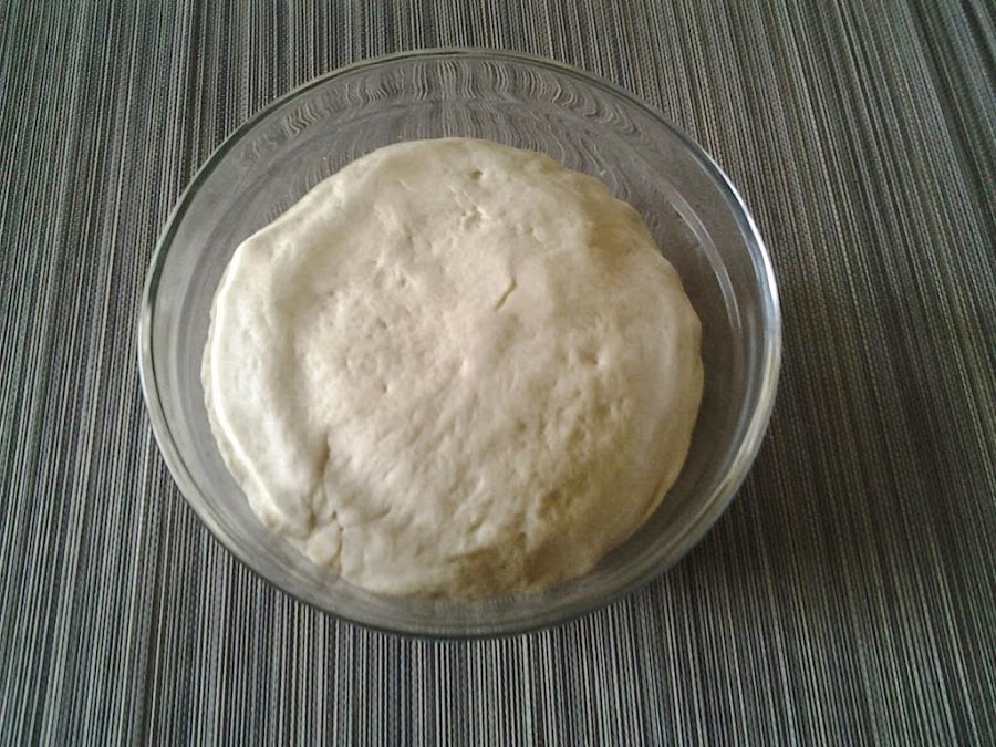Preparación:Para la masa se mezcla el agua templada, el aceite, la levadura y luego todo lo demás, se amasa bien se deja reposar durante una hora hasta que doble su volumen.