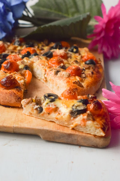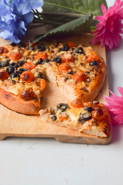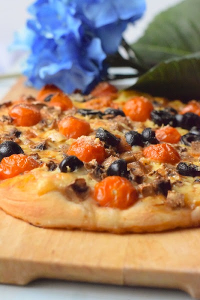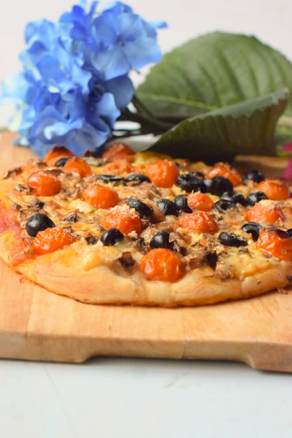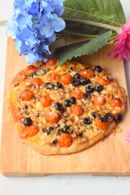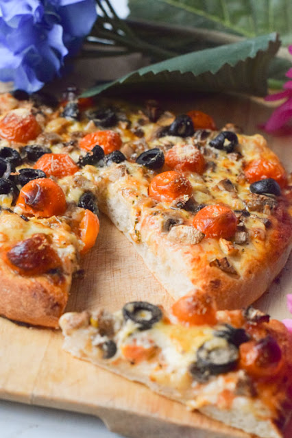 A mi la pizza me gusta gordita, de hecho me encantaban unas pizzas comerciales tipo bollo, si os gusta más fina simplemente extender más la masa.