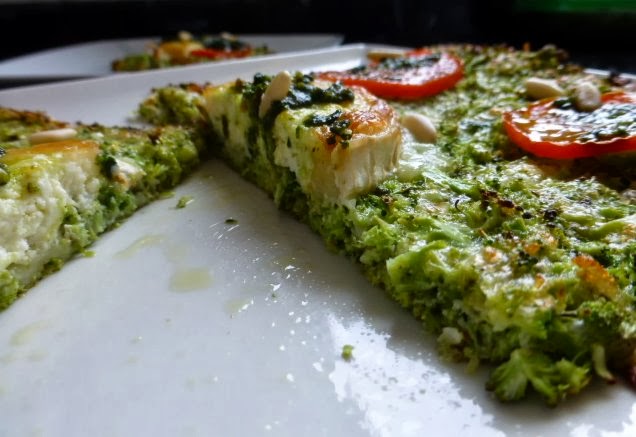 Pizzacoli (Masa de pizza de brócoli) con Queso de Cabra.