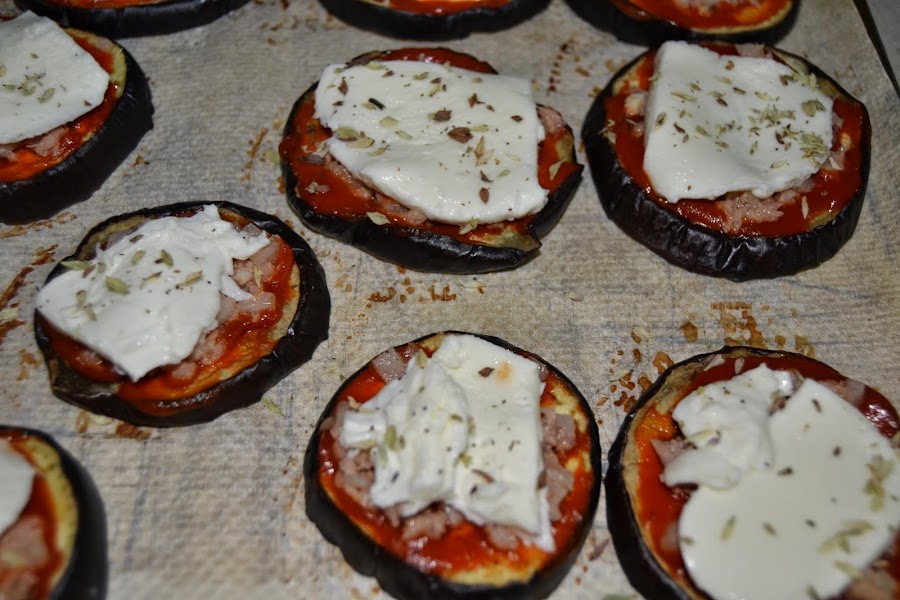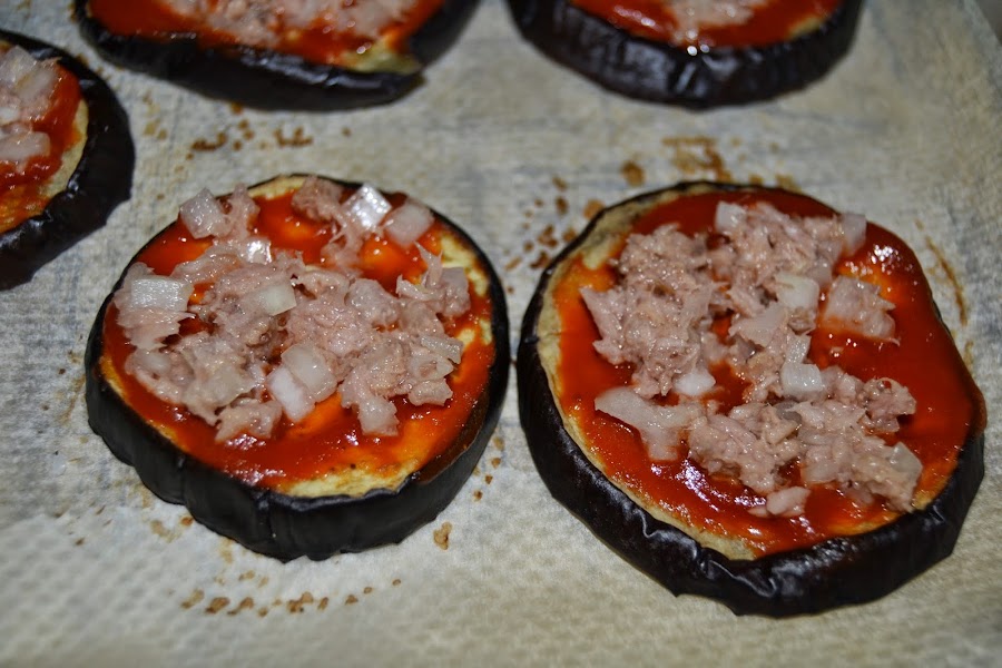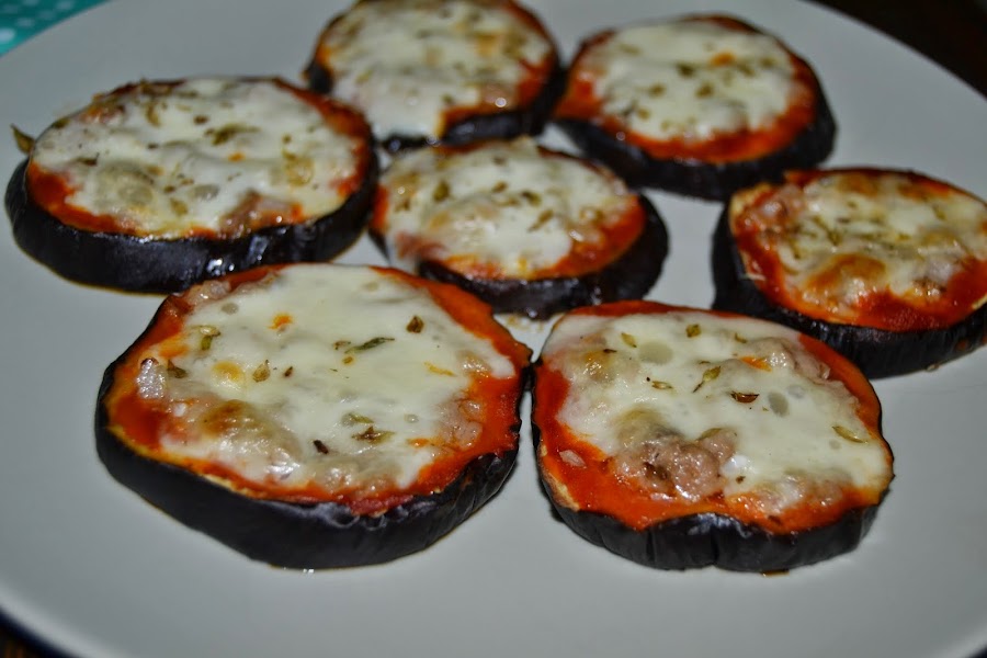 Metemos en el horno a 180 grados durante unos diez minutos mas. Yo las he rellenado de atún pero como cualquier otra pizza admite cualquier relleno. De cualquier manera quedan igual de ricas y es otra forma diferente de comer berenjenas. Espero que os guste.
