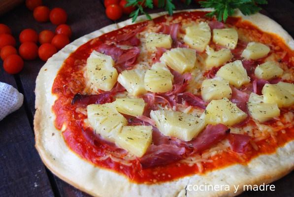 Vamos a preparar en una rica pizza hawaiana casera, empezando por la masa casera, una tipo pan, sabrosa y típica de la cocina italiana. Esta es una de mis pizza favoritas y es que la piña me vuelve loca, pero como en toda buena pizza una de las cosas más importantes es la masa, ya sea fina y crujiente o más gruesa y esponjosa. Elige tu la forma que darle y el grosor; pero ya verás que en cualquier caso esta pizza está riquísima y hará las delicias de todos.