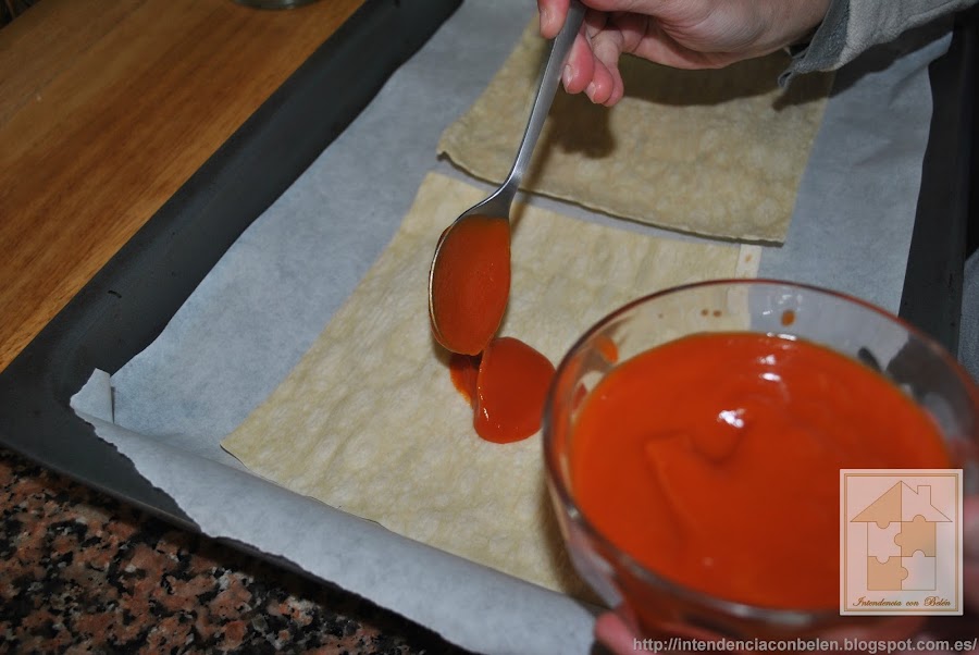 Untamos la tortilla con salsa de tomate.