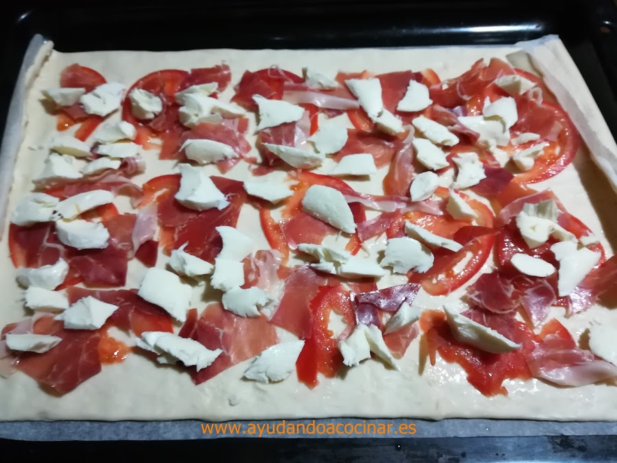 Sacar la masa del envase y colocarla estirada en la bandeja de horno.