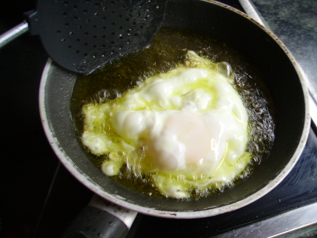 3.- Freímos el huevo (si queremos darle más sabor echarle dos dientes de ajo)