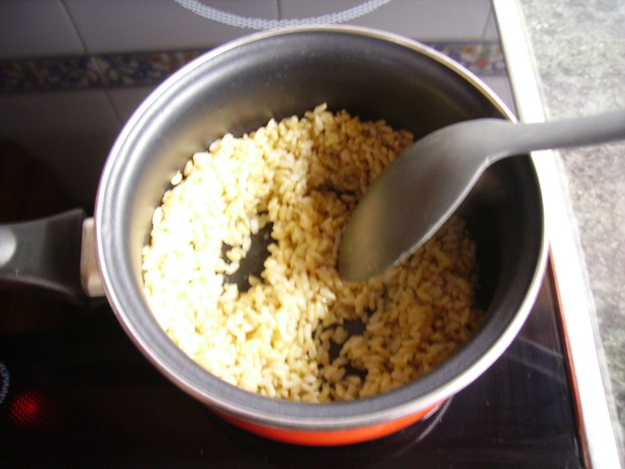 2.- Mientras cocemos el arroz con un ajito picado.