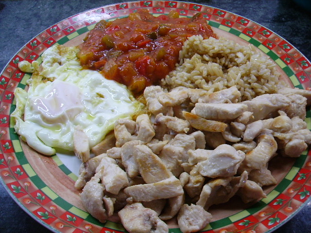 Hoy he llegado del trabajo a las 3:45 y tenia una sorpresita ¡¡Lavavajillas averiado!! así que he tenido que ponerme a desarmarlo y repararlo. Menos mal que uno es chico reparatodo y parece ser que ya funciona. El problema es que he tenido que tirar de comida rápida, así que me he preparado un platito combinado, de esos que me hacía en mi juventud adolescente.