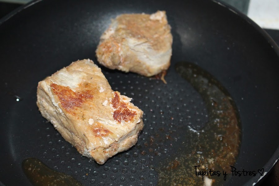 Doramos el lomo en una sartén sin aceite, el lomo ya lleva la grasa de la manteca.