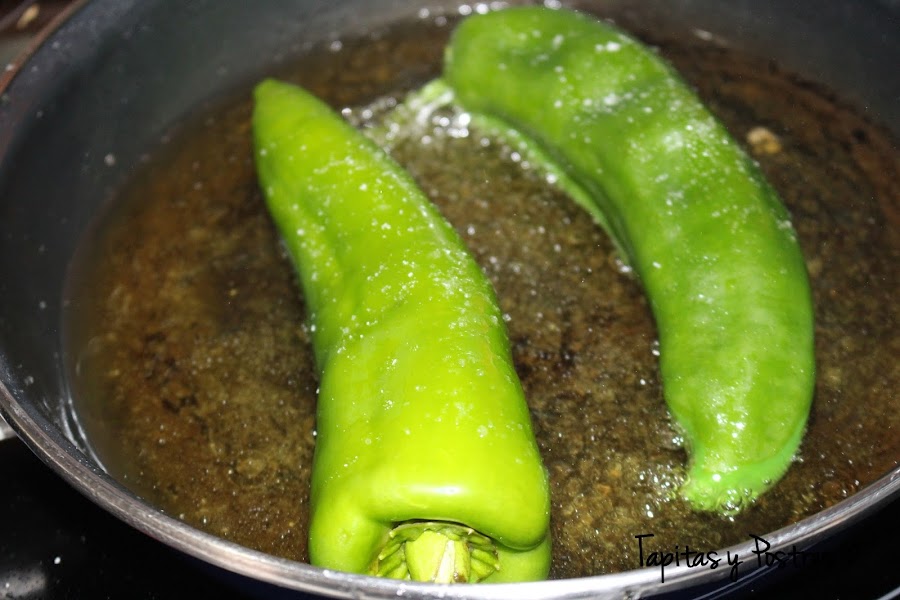 Lavamos los pimientos y los secamos, los salamos y los freímos a fuego suave hasta que estén a nuestro gusto, a mi me gustan muy hechos.