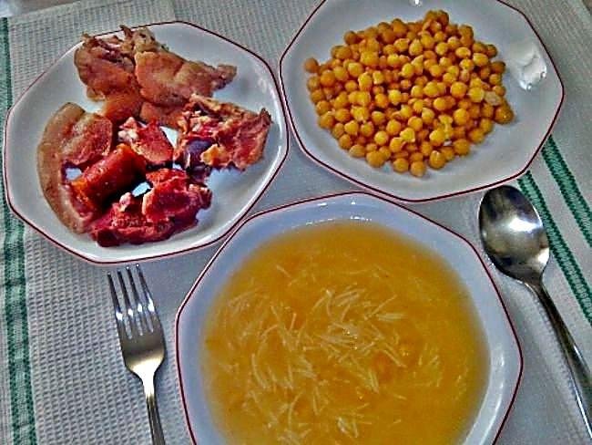 El blog Cocina con Mari nos enseña a preparar este manjar que seguro que no dejará indiferente a nadie, empezamos poniendo en remojo la noche anterior los garbanzos y por otro lado las patas de cerdo saladas. Al día siguiente ponemos a cocer los garbanzos con las patatas en abundante agua caliente con sal y las patas, el chorizo y por otro. Cuando estos últimos hayan soltado la grasa los juntamos con los garbanzos, desespumamos y cocemos en la olla como 30 minutos dependiendo de esta, Una vez ya cocidos preparamos una rica sopa con el caldo, acompañamos con las carnes y con los garbanzos.