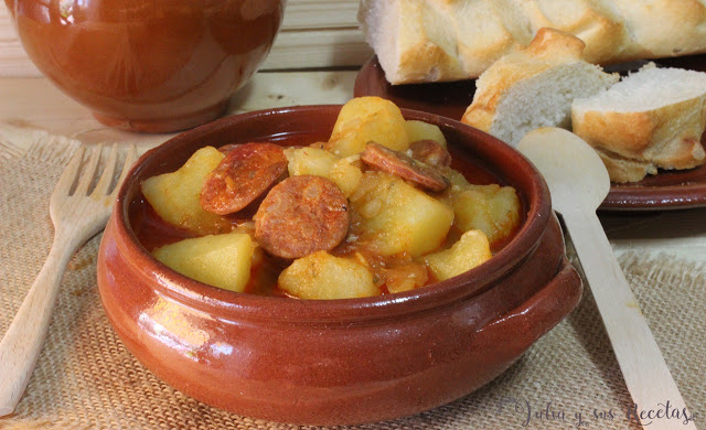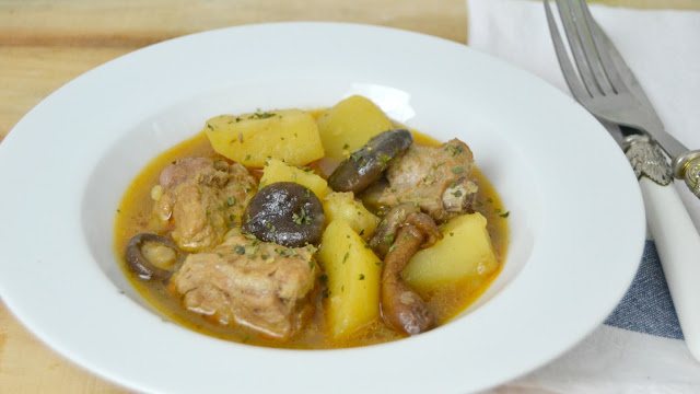 Este guiso se hace con patatas, costillas, setas, cebolla, pimientos, ajos...y algunos ingredientes más que veréis visitando la receta.