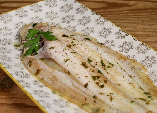 1. Ponemos el agua en la jarra del robot y el lenguado en la bandeja vapor, y cocinamos.2. Salpimentamos y reservamos en caliente. Retiramos el agua.