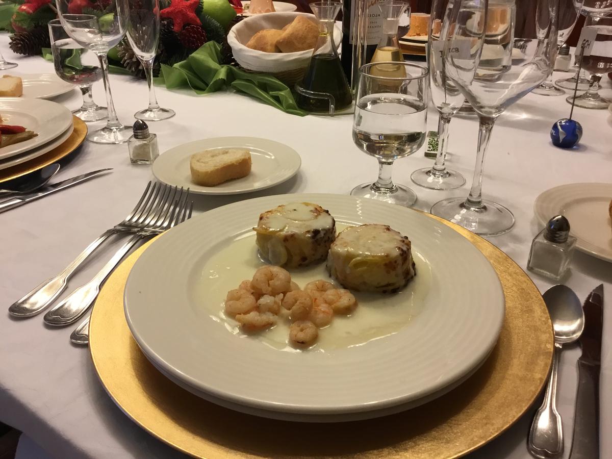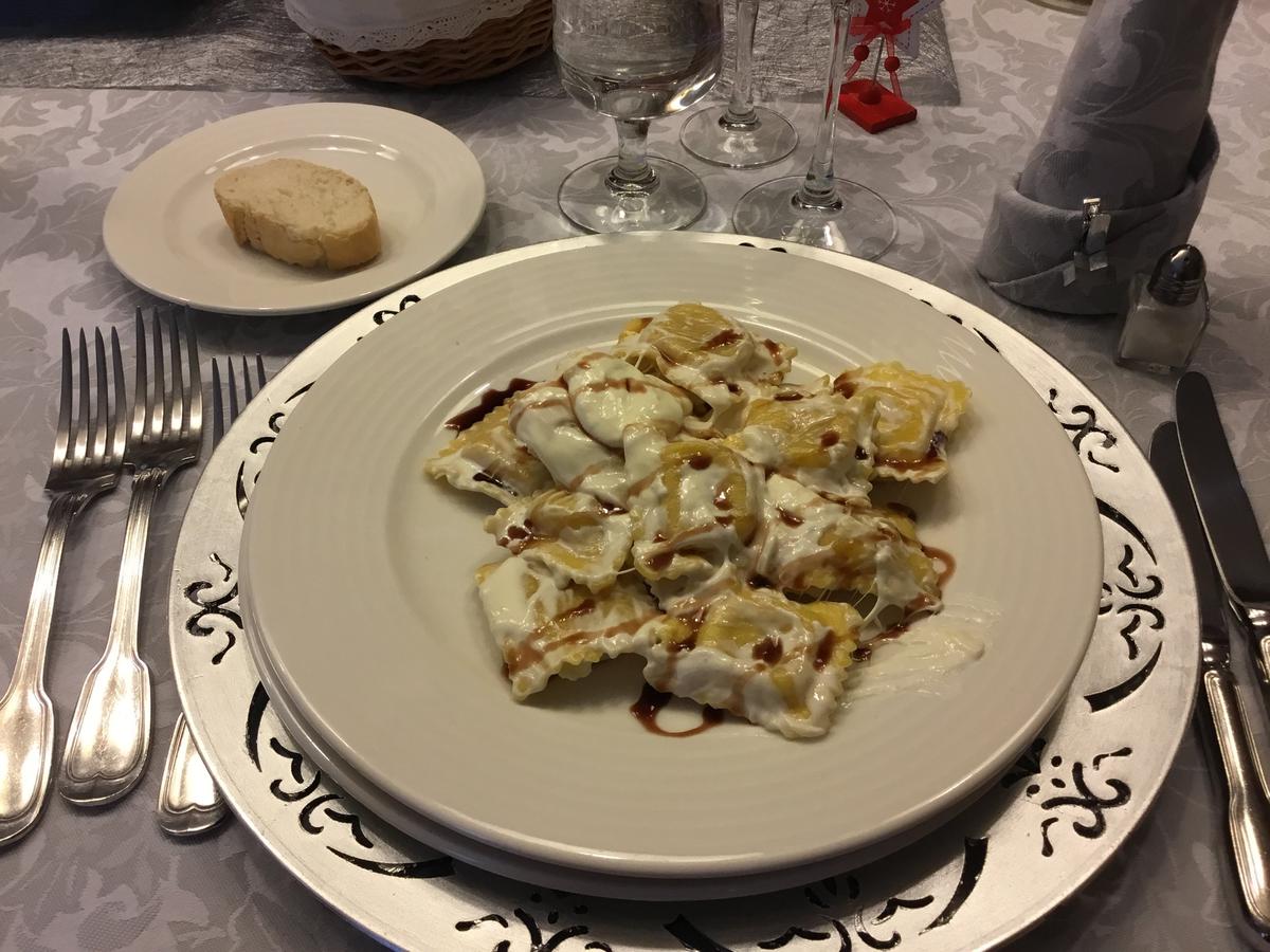 Raviolis de manzana y foie de Carrefour, con salsa bechamel. Tienen muchos rellenos distintos.