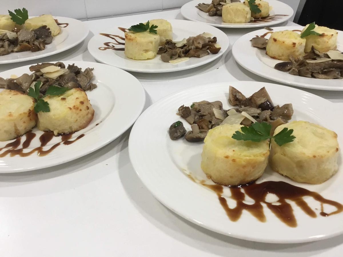 Dos versiones distintas de flan de patata y queso de Lidl: una con gambas y bechamel y otra con setas y reducción de Módena.
