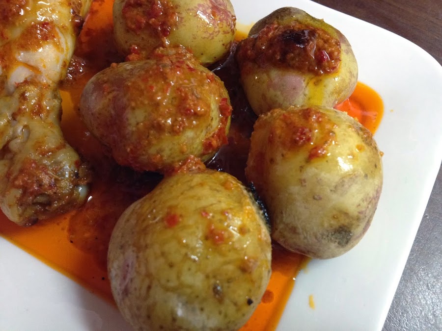 1- Comenzamos con unas buenas papas arrugadas con mojo y unos muslos de pollo. ¡¡Sabrosas y un poco picantes!!