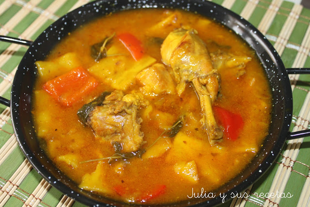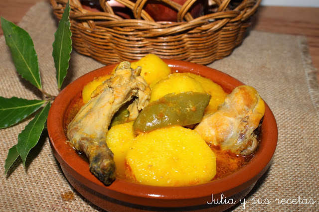Guisado de patatas y conejo que se comía en el campo en época de la recogida de la uva.