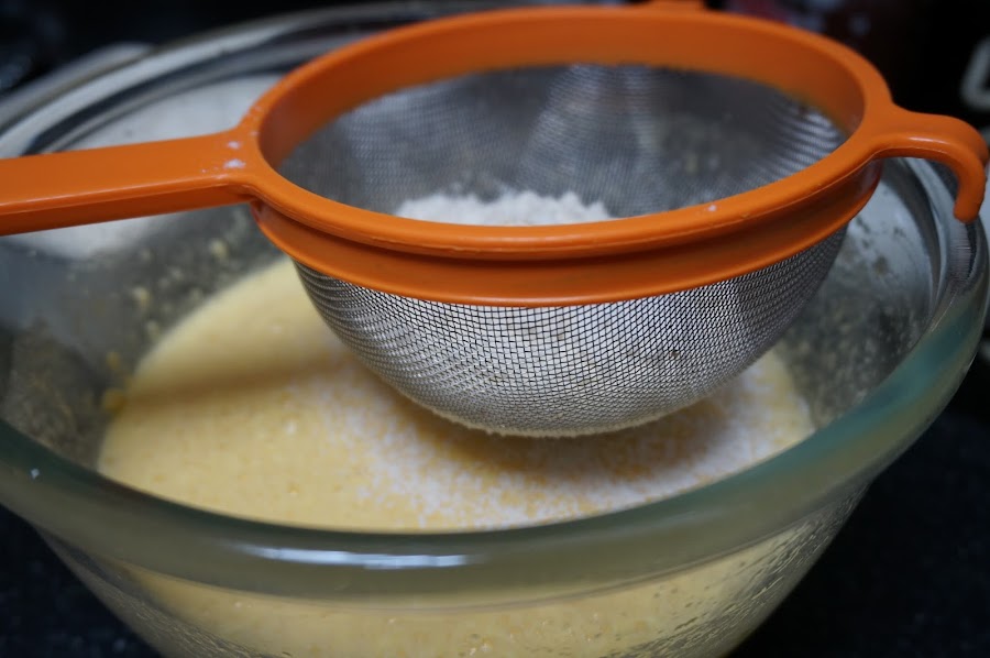 Seguido echaremos la harina junto con la levadura tamizada, poco a poco.