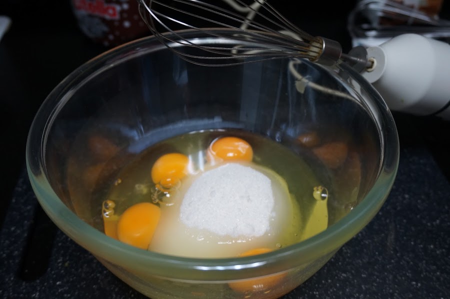 En un bol batimos los huevos con el azúcar, hasta que tengamos una masa bien espumosa.