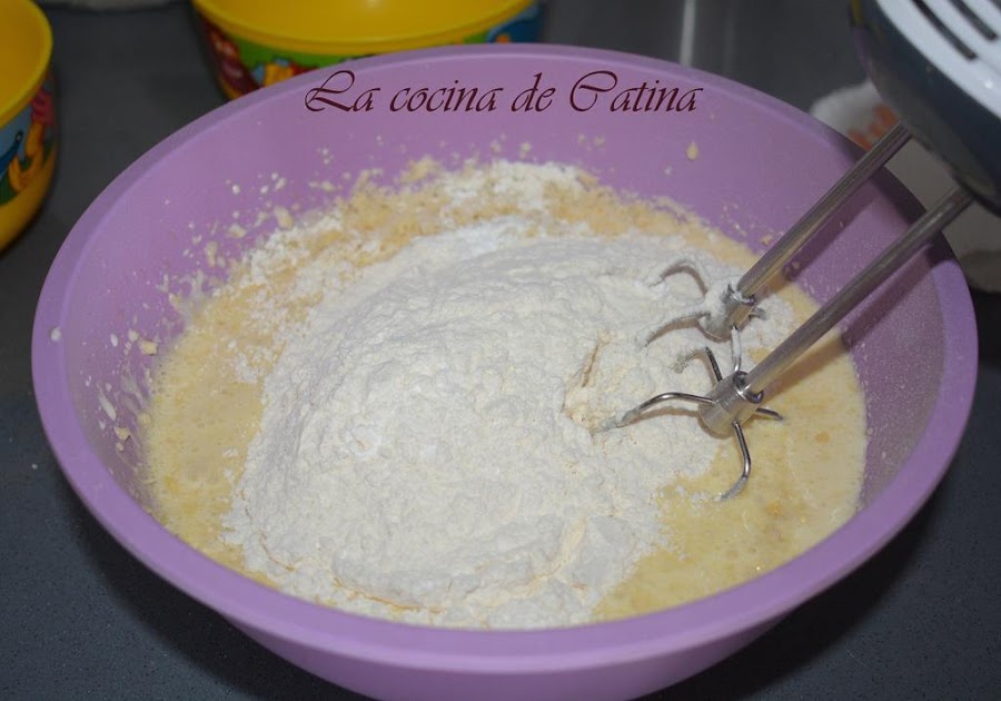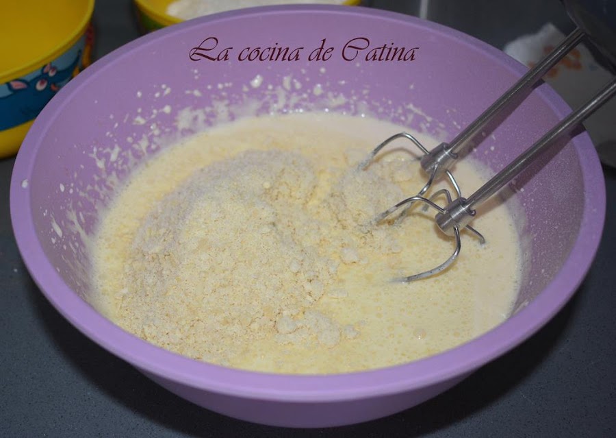 Aparte, batimos las yemas con el azúcar, añadimos el aceite poco a poco, el yogur y el licor. Agregamos la harina tamizada y lo mezclamos todo bien.