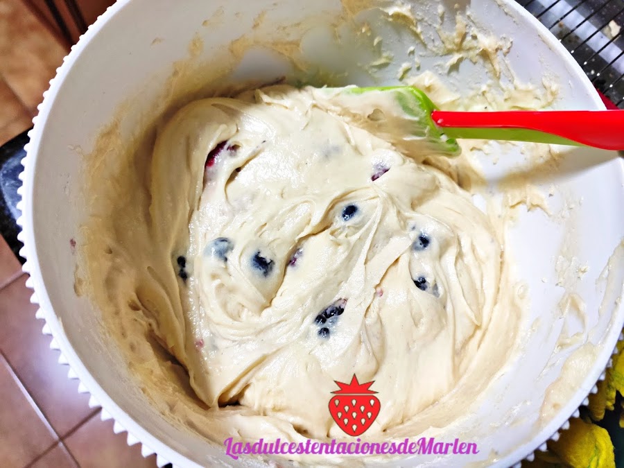 Aprovechando que me quedó fruta de la tarta anterior he hecho este bizcocho. La verdad es que ha quedado delicioso, y muy jugoso al llevar la fruta. Os animo a que lo hagáis!!!