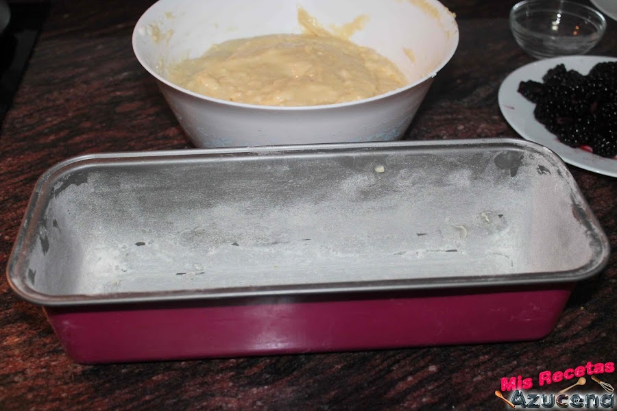 Cogemos el molde y lo untaremos con mantequilla por todos los lados, después ponemos un poco de harina y la repartimos bien le damos la vuelta y le damos unos golpes para quitar el exceso de harina, si tienes spray antiadherente puedes ponerle un poco y no utilizar los pasos anteriores, el molde que yo he utilizado es de 29x10 centímetros.