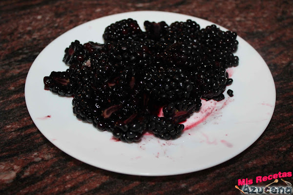 Partimos las moras por la mitad, podemos reservar algunas enteras para la decoración.