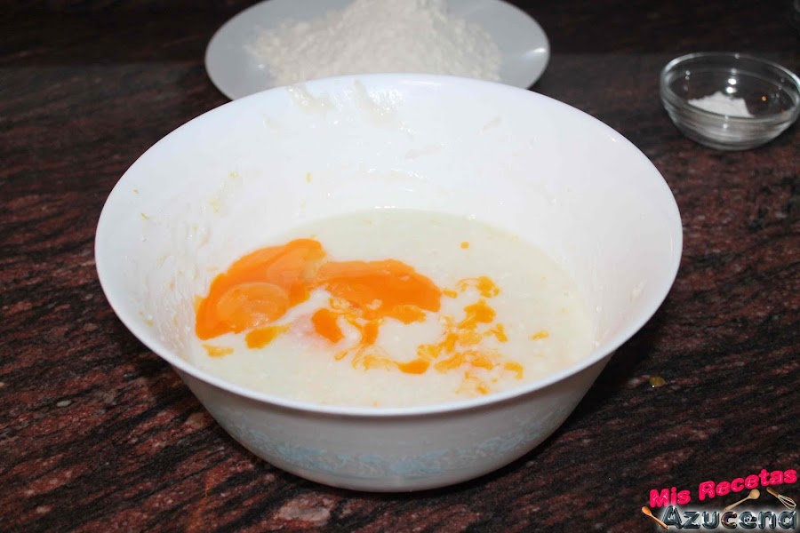 Una vez tengamos todo bien mezclado añadiremos las yemas de los huevos que teníamos reservadas y seguiremos mezclando.