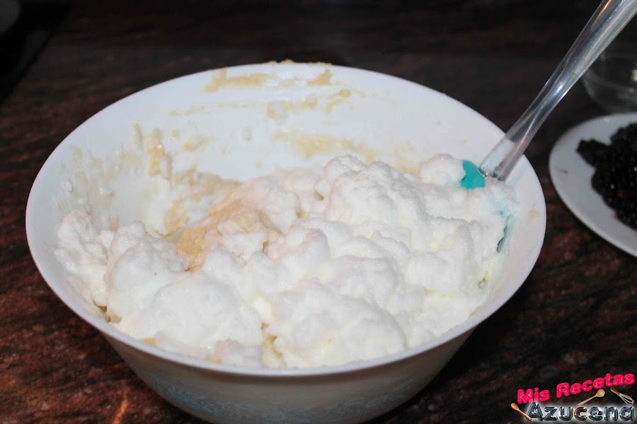 Ya solo nos falta añadir las claras que tenemos a punto de nieve y con movimientos envolventes.