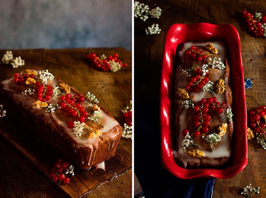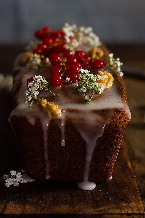 Volcamos sobre el plum cake frio, y si queremos adornamos con alguna nuez que hayamos reservado o con los frutos que prefiráis.
