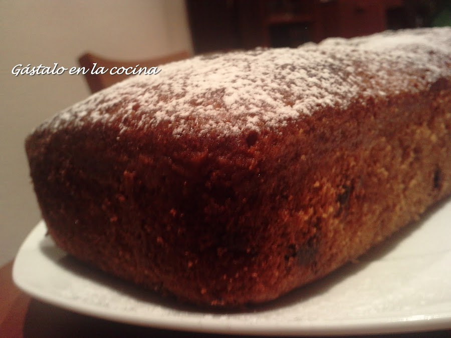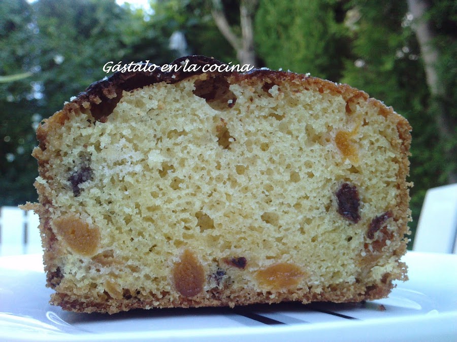 La receta la vi en mundorecetas, a mongeta, que la tomó de un repostero llamado Jordi Butrón, aunque yo la he tuneado y en lugar de fruta escarchada le puse orejones y pasas.