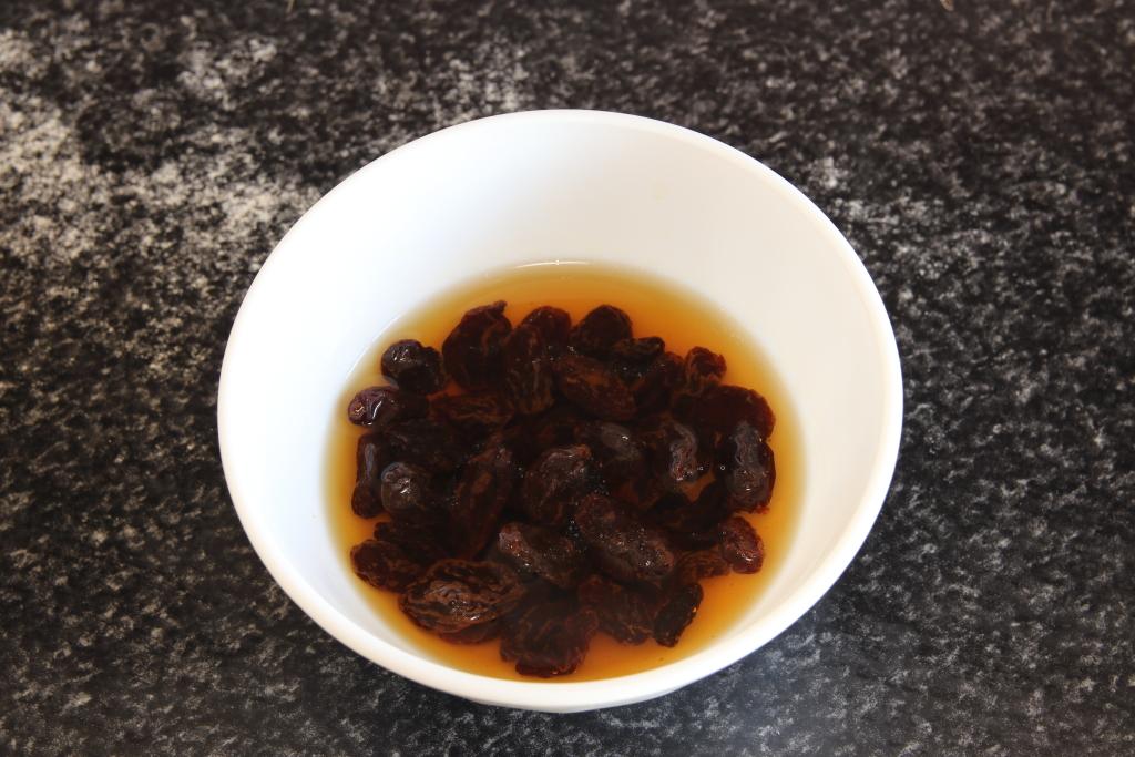Ponemos las pasas a remojar en el ron y reservamos. Una vez que estén bien borrachas, escurrimos en un escurridor y reservamos.