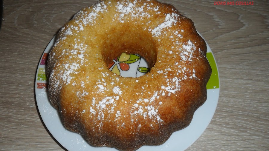 Preparamos un molde corona con aceite lo justo y espolvoreamos con un poco de harina.Vertemos la masa y dejamos en el horno precalentado a 170ºc unos 35 minutos y quede doradito. Desmoldamos templado y una vez frío espolvoreamos con azúcar glass.Servir al gusto.